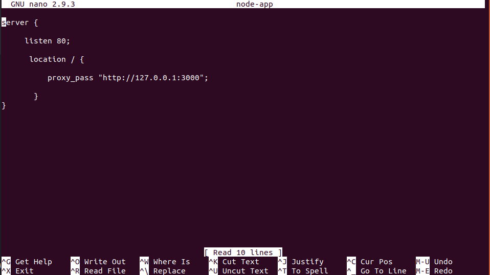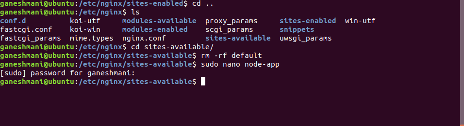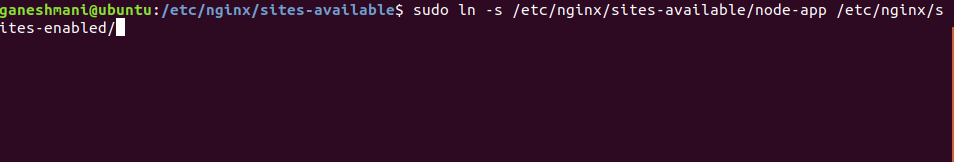 $ sudo ln -s /etc/nginx/sites-available/node-app /etc/nginx/sites-enabled/