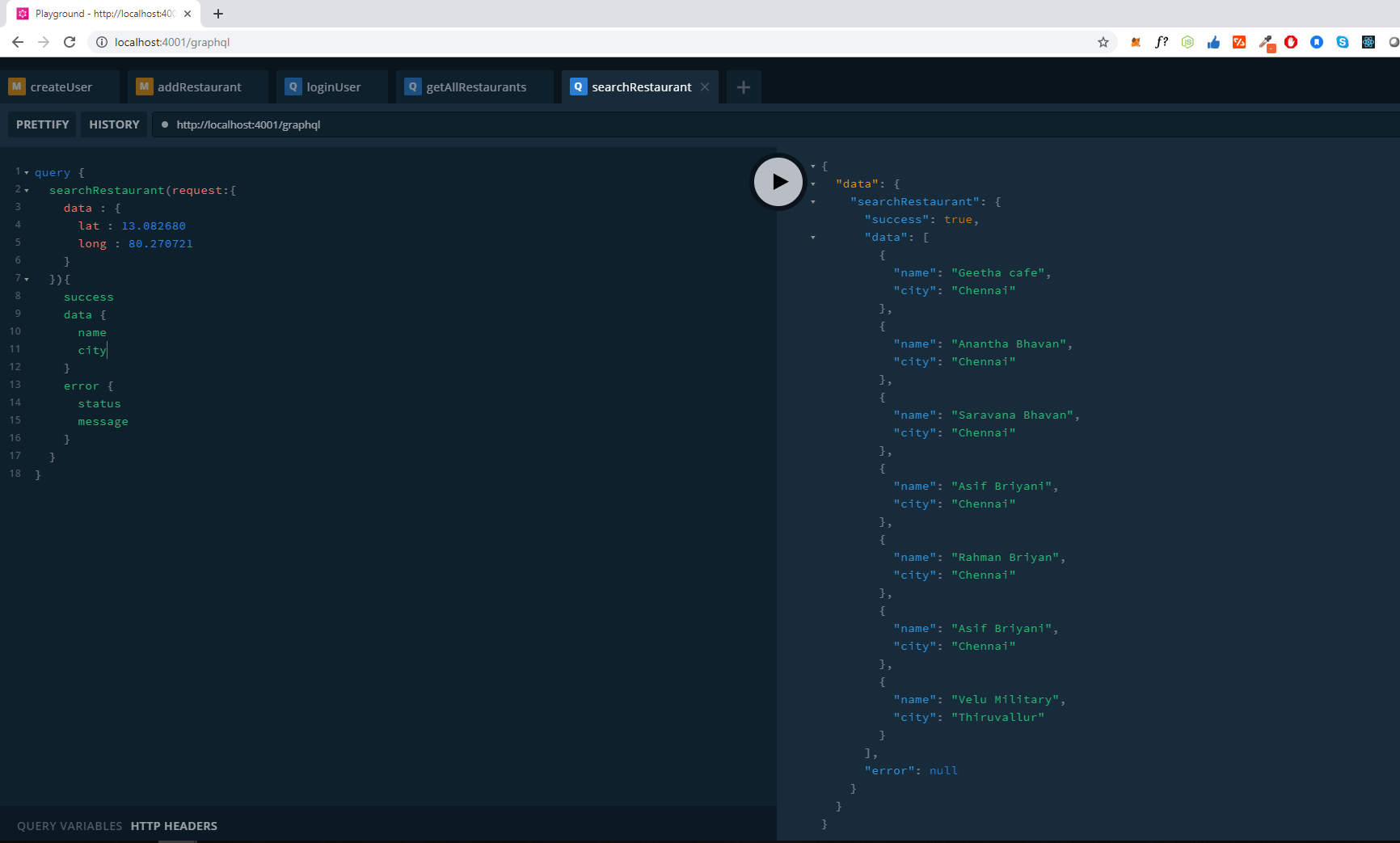 while searching the nearby restaurant using the user latitude and longitude. we are making the MongoDB database with the query geoNear which gets all the restaurant details based on the latitude and longitude.