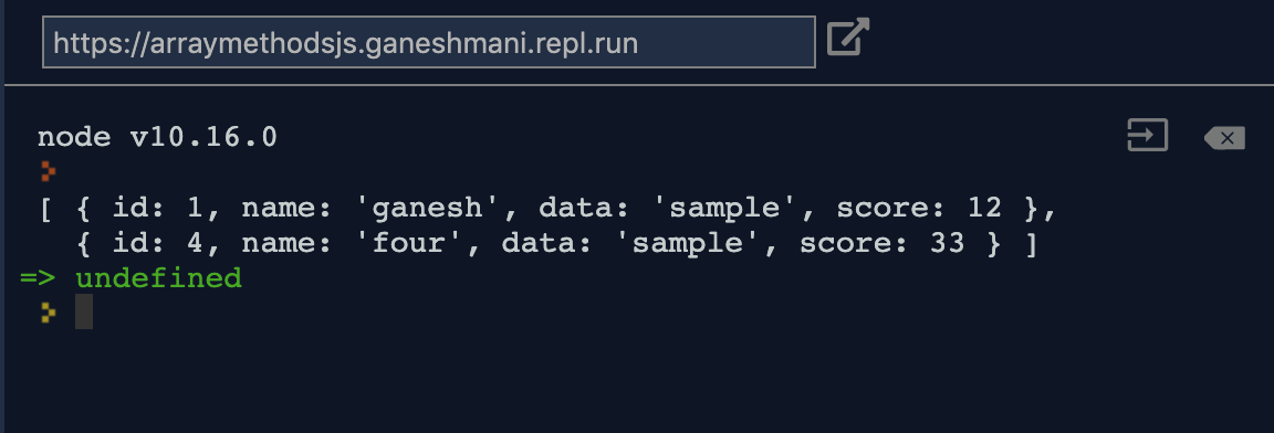 Above all, we are checking if an object has score value equal to 23 , if it is, it returns true for the element.