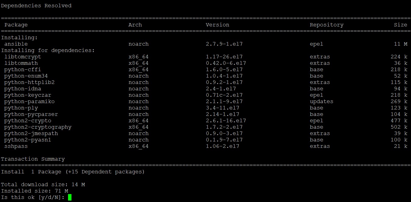 After that, execute the following yum command to install Ansible on Fedora control machine