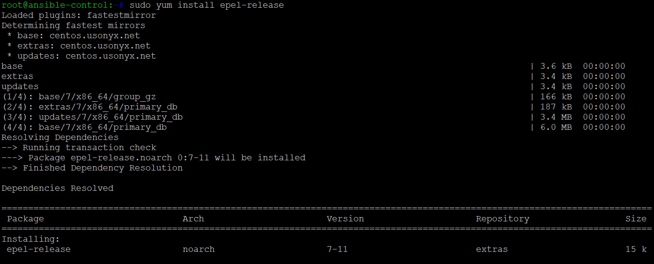 Execute the following yum command to install Ansible on RHEL / CentOS control machine