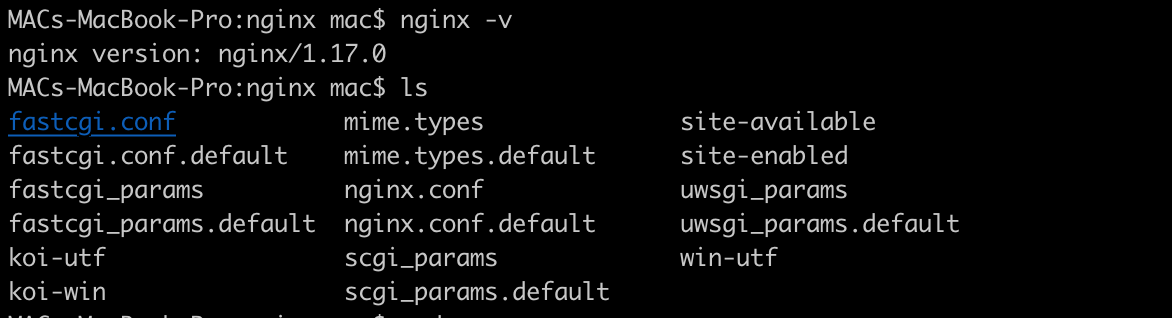 After installing nginx in the machine, we can access the nginx configuration file in /usr/local/etc/nginx location.you can see the files and directory in the nginx as follows