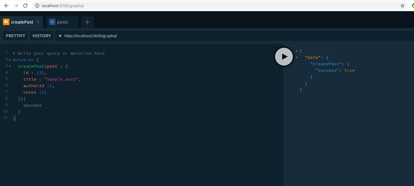 - Create Post Mutation gets the Post data from the request and updates it in the database
