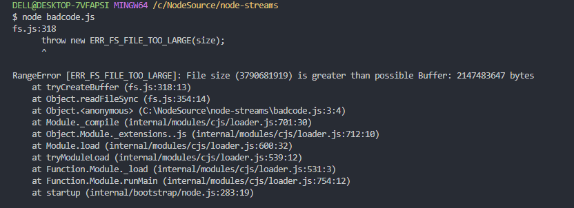 There is a limit in Node.js Buffer, we can’t store more than the Buffer size.