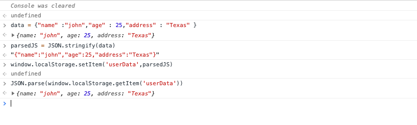 After that, clear is to remove all the items from the localStorage. it will be useful when you want to remove all the items from the localStorage for the particular domain.