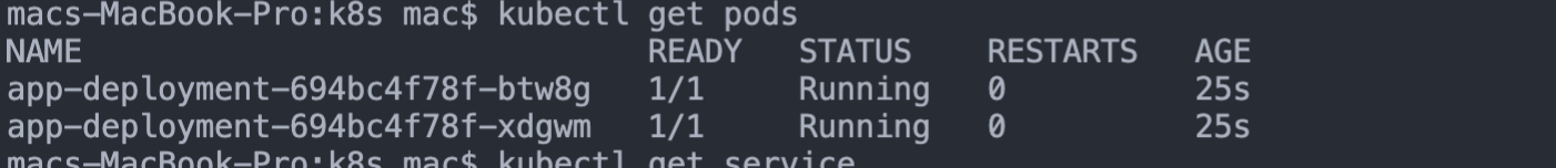 Since, we configured replicaSet as 2. it creates two pods for us. to check the service.
