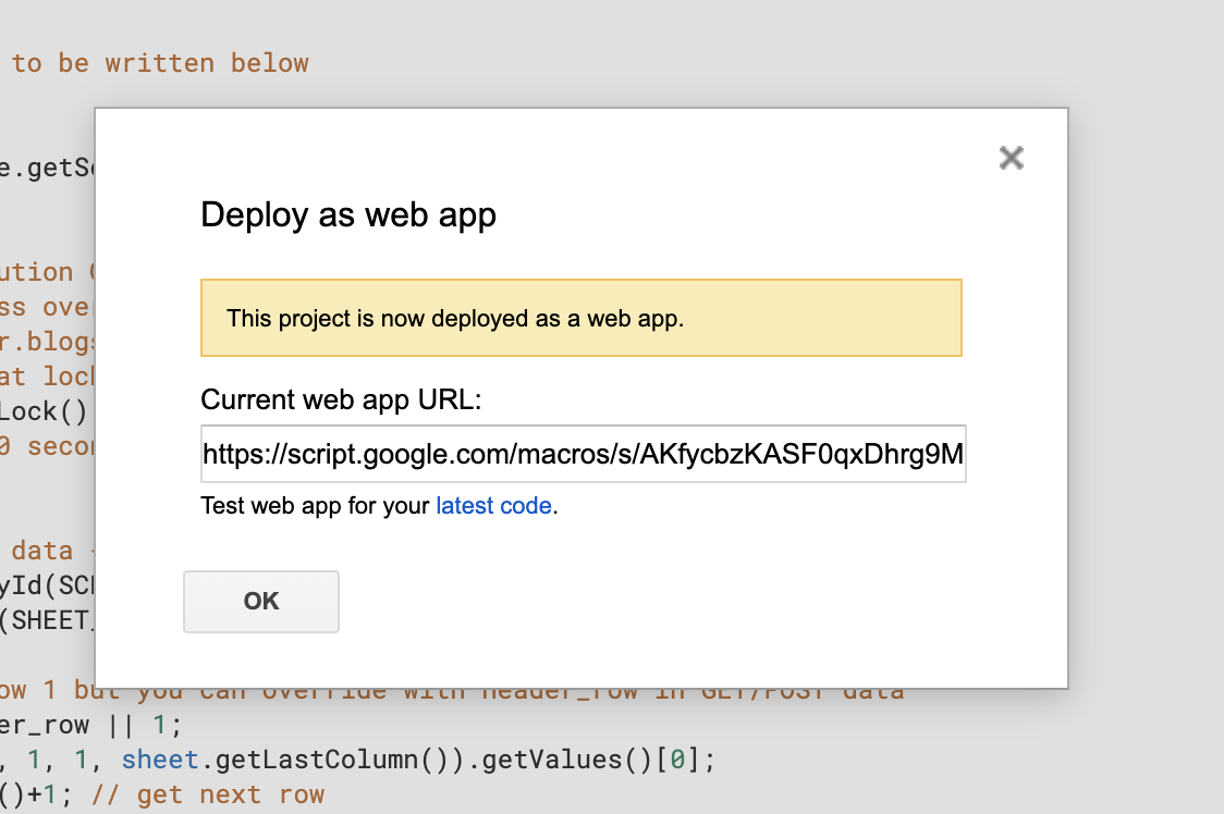 // 4. Copy the 'Current web app URL' and post this in your form/script action