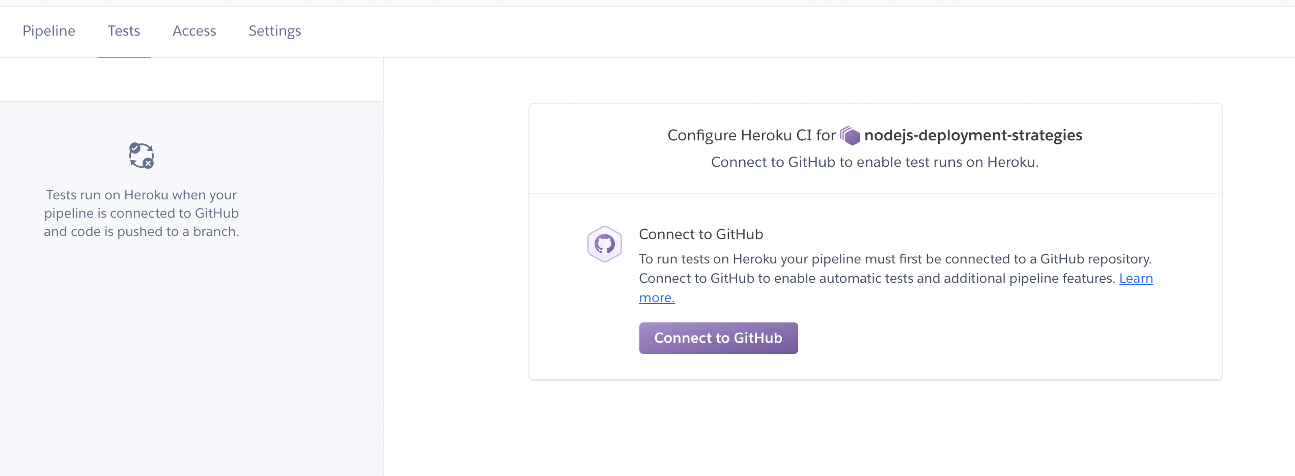 An important thing to note here is, we need to test suits before merging the change to the main branch, i.e., the Continous Integration process(CI). Fortunately, Heroku provides a CI pipeline as an add-on.
