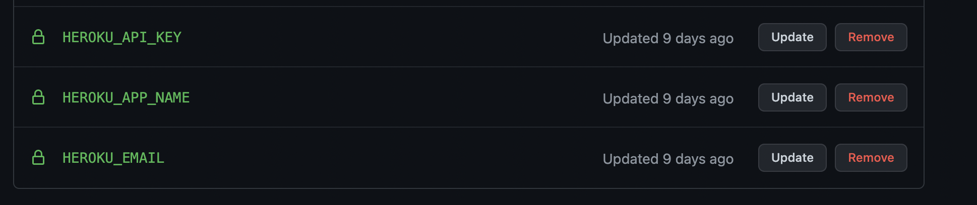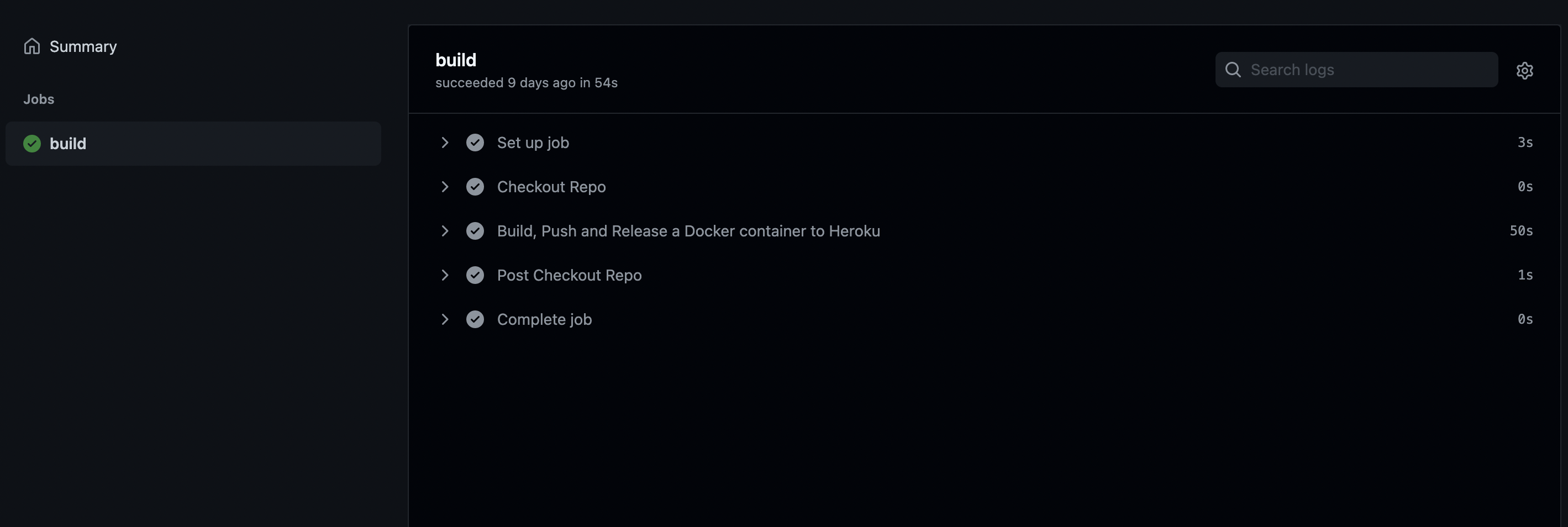 Finally, we have gonuit/heroku-docker-deploy@v1.3.3 action to build, push and release docker container to Heroku.