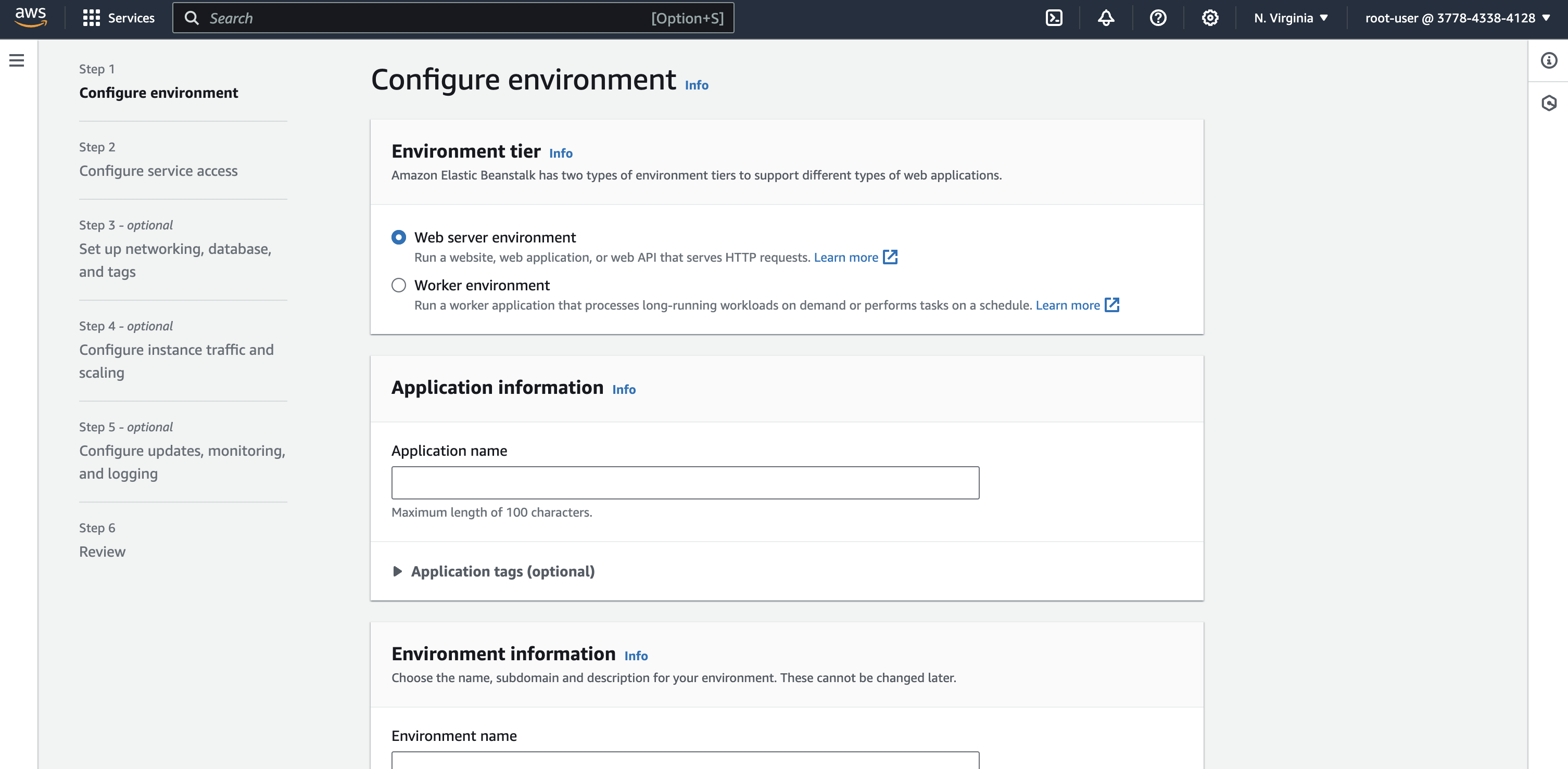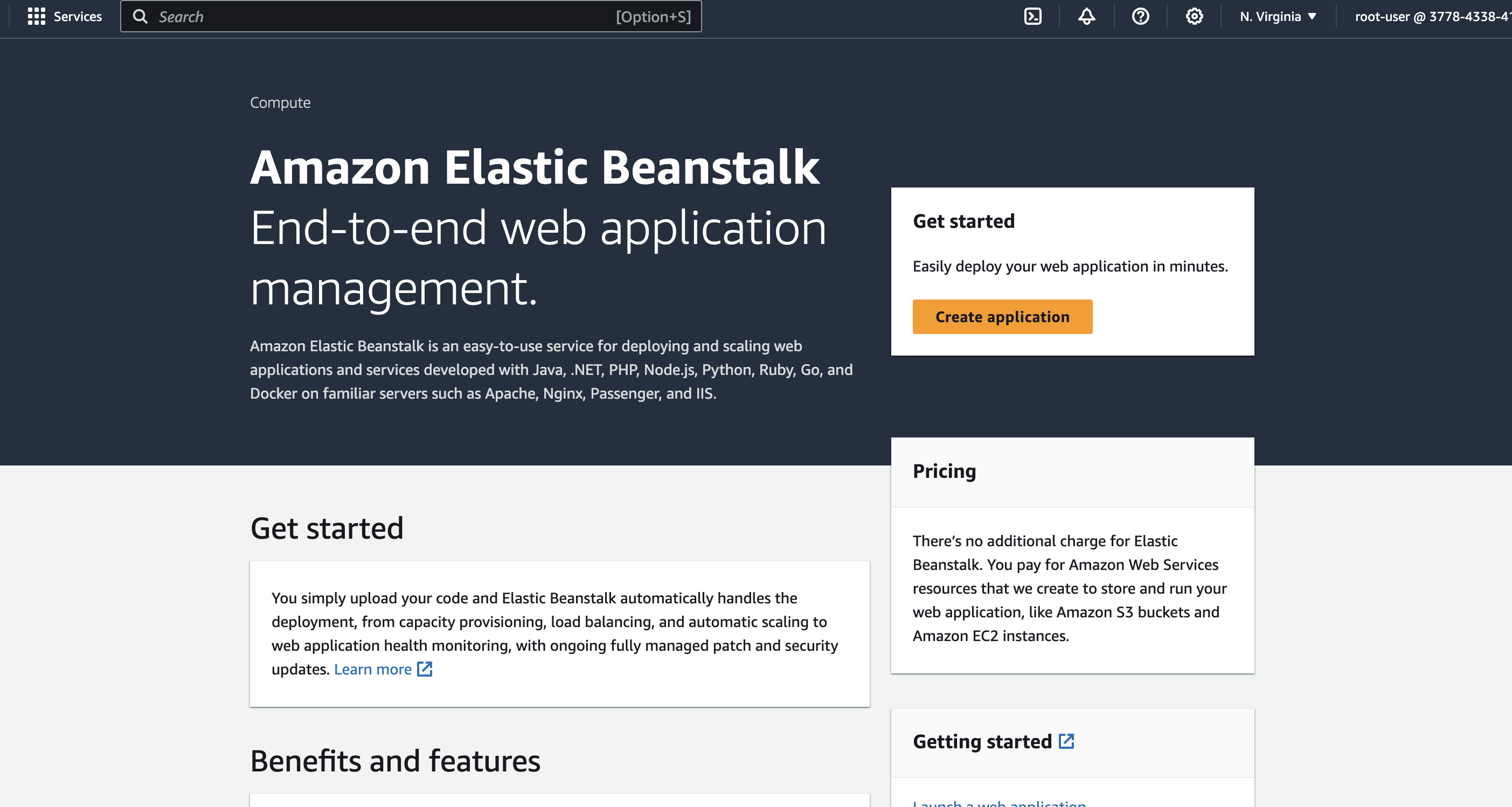 Go to Elastic Beanstalk dashboard and click on Create application.