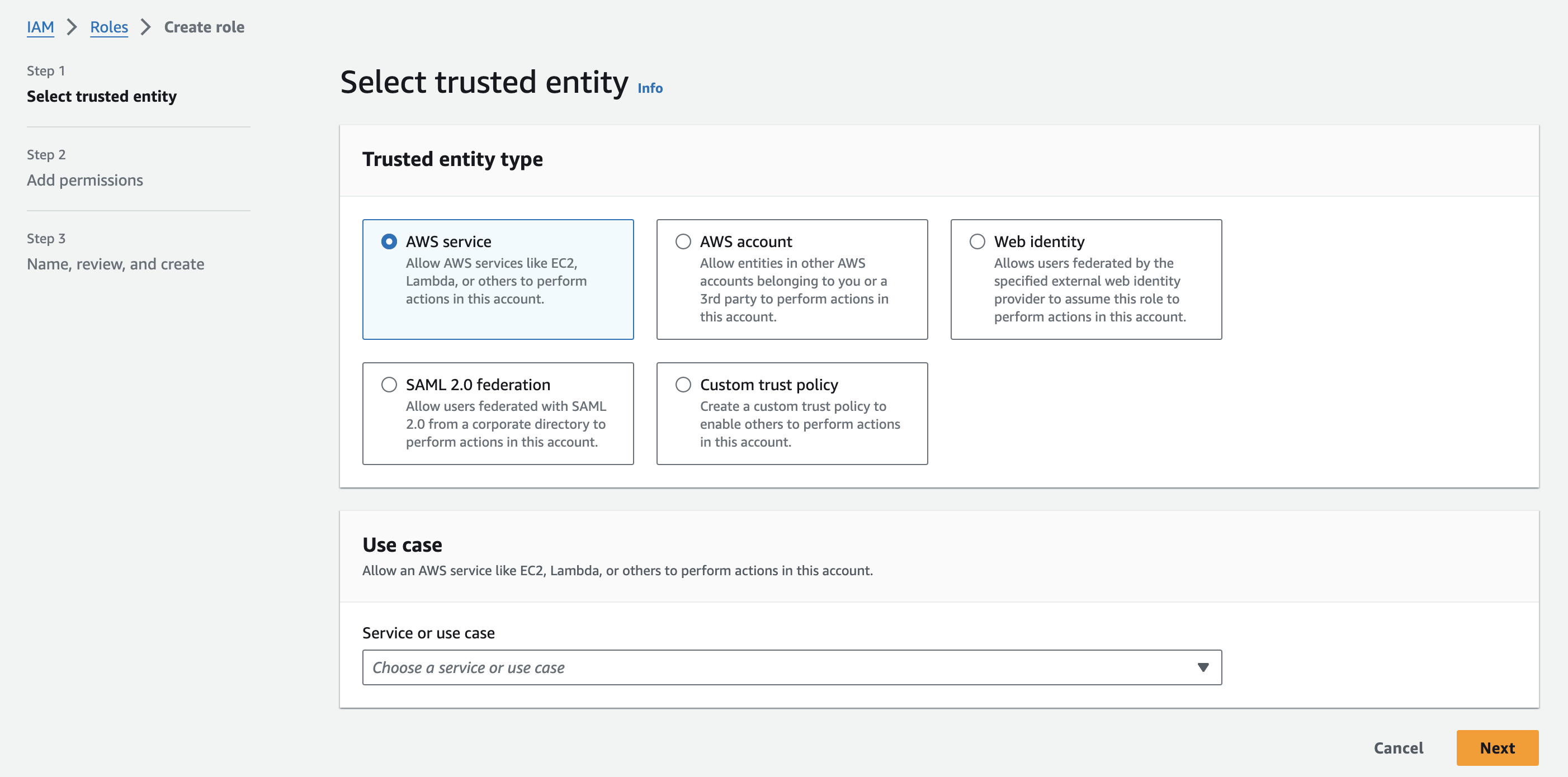 Go to IAM → Roles and click on Create role.