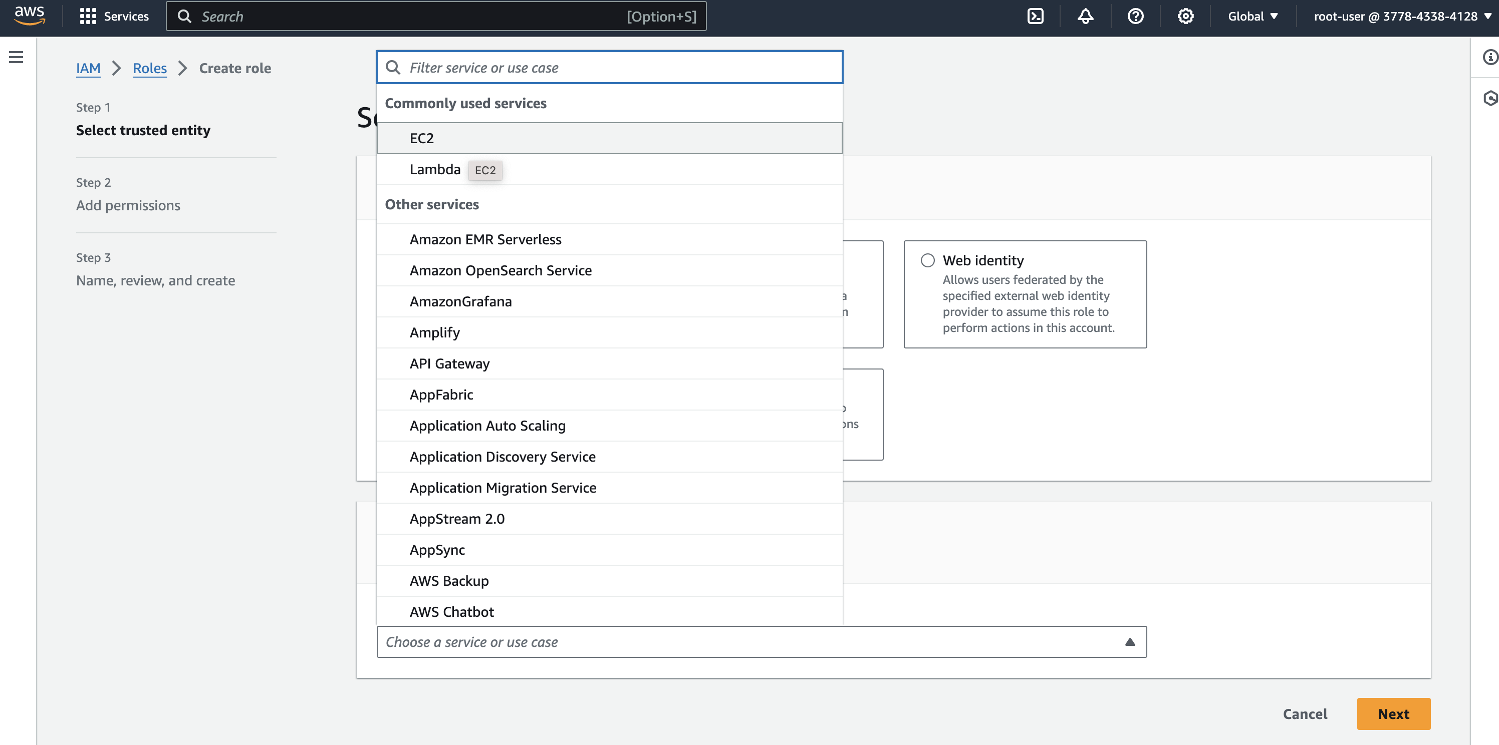 For the Use case, select EC2 and click Next.