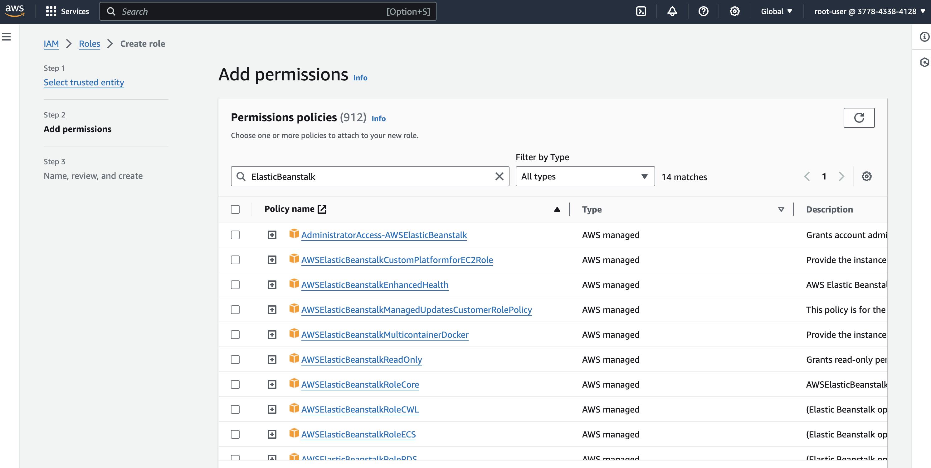 Since we are allowing Elastic Beanstalk to create and manage resource, Select AWS service as entity type.