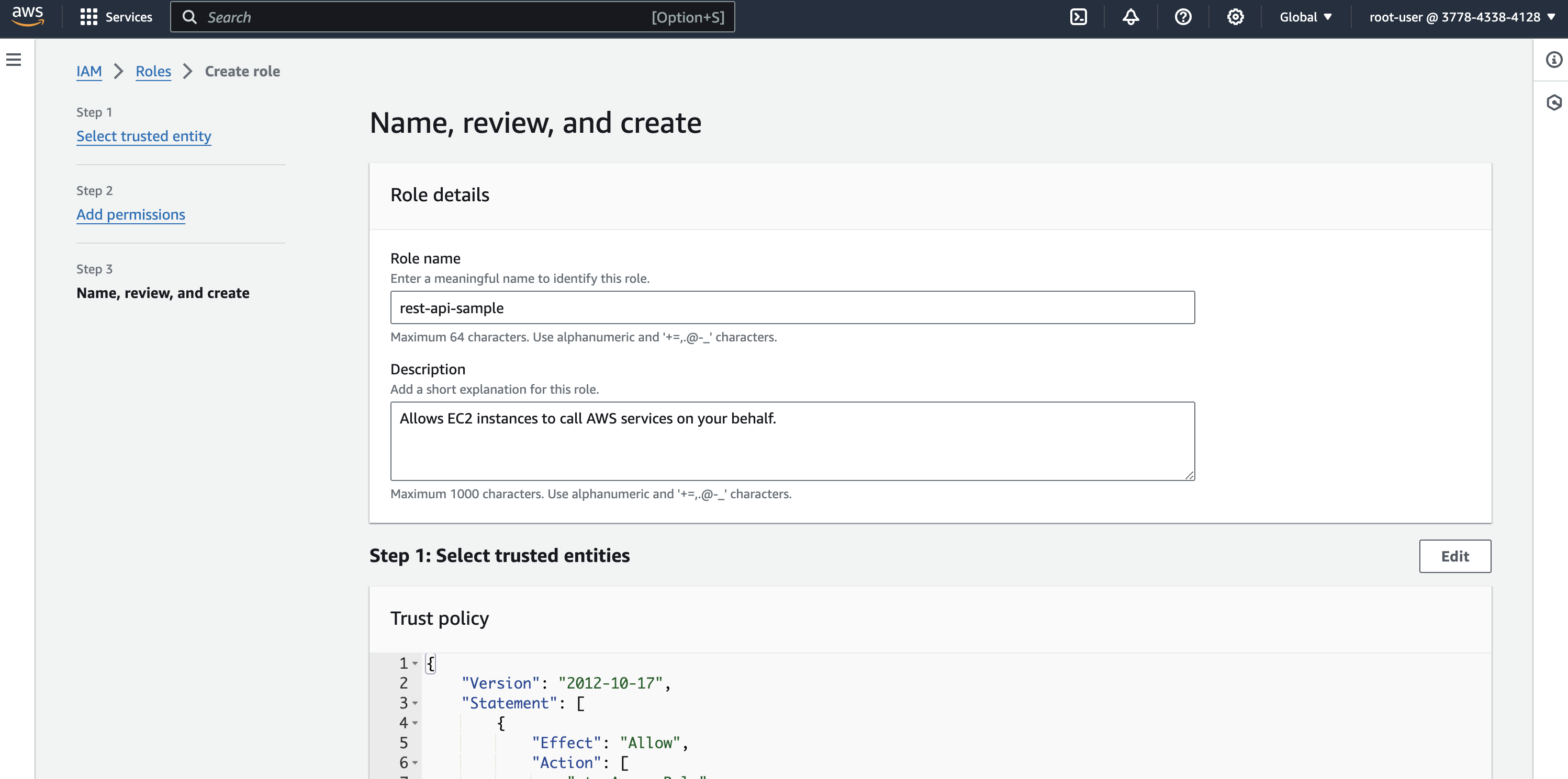 Finally provide a name for IAM role and create it.